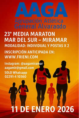📅 12 de Abril 2026 📍Miramar 👥 Organiza: @chapuaventura/ FICHA TÉNICA📆Domingo 12 de Abril 2026🕘 Largada: 10.00hs📍Ruta Nacional 11 en Sector Plantas – Miramar – Provincia de Buenos Aires🏃 Distancias: 4 km de pedestrismo – 35 km de ciclismo – 4 km de pedestrismo👤 Organiza @chapuaventura/ Información del duatlón: Valores de inscripción: Con el valor […]